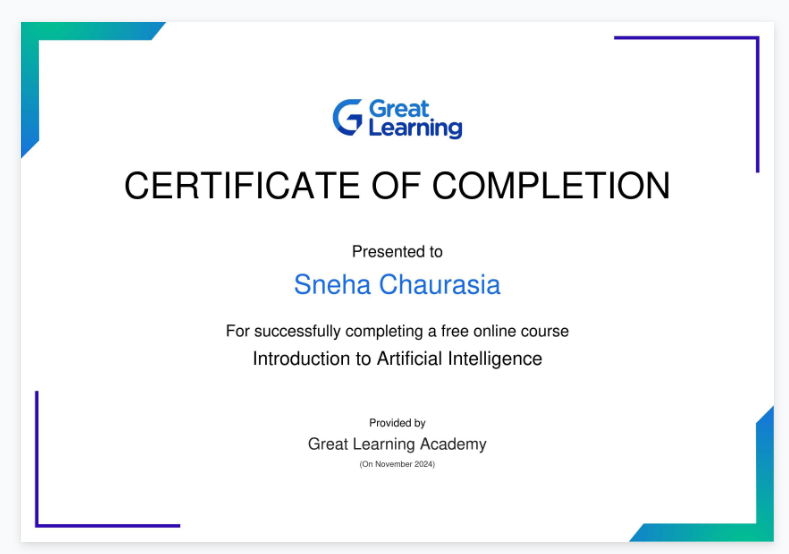 View CertificateCompleted the "Introduction to Artificial Intelligence" course on Great Learning.